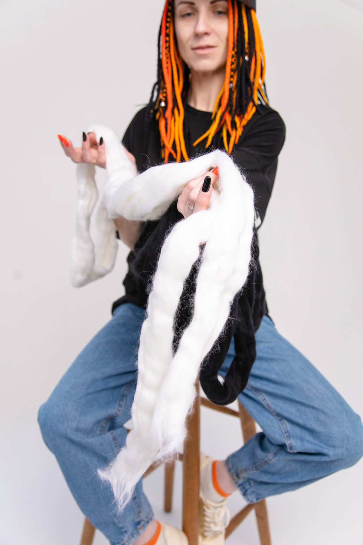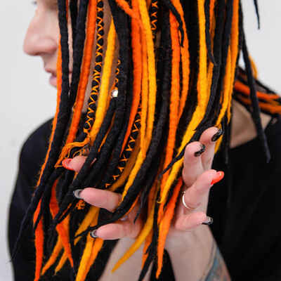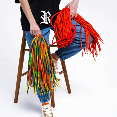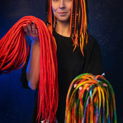 В рамках курса мы не будем заниматься сухим валянием (работой с иглами), соединением войлока с канекалоном или созданием войлочных скульптур для креативных дизайнов. Это обучение направлено на то, чтобы вы научились легко и быстро создавать коммерческие комплекты из шерсти и максимально раскрывать своё творчество в окрашивании дредов.